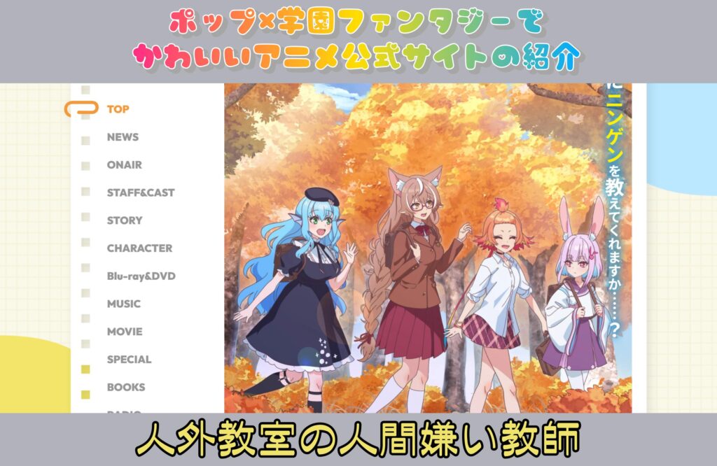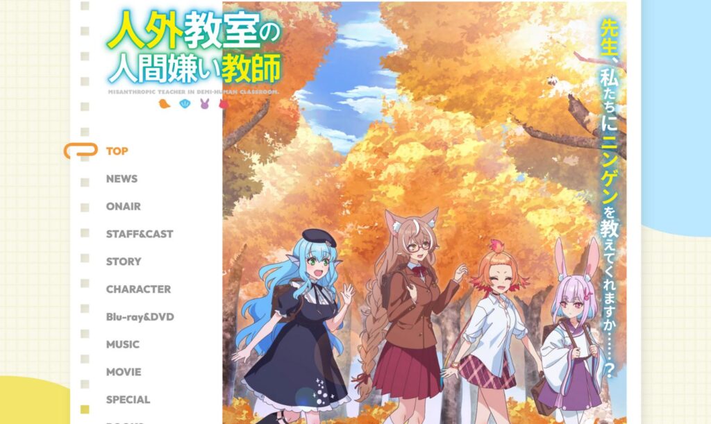 今回は、TVアニメ人外教室の人間嫌い教師の公式サイトをピックアップします 🍁🦊