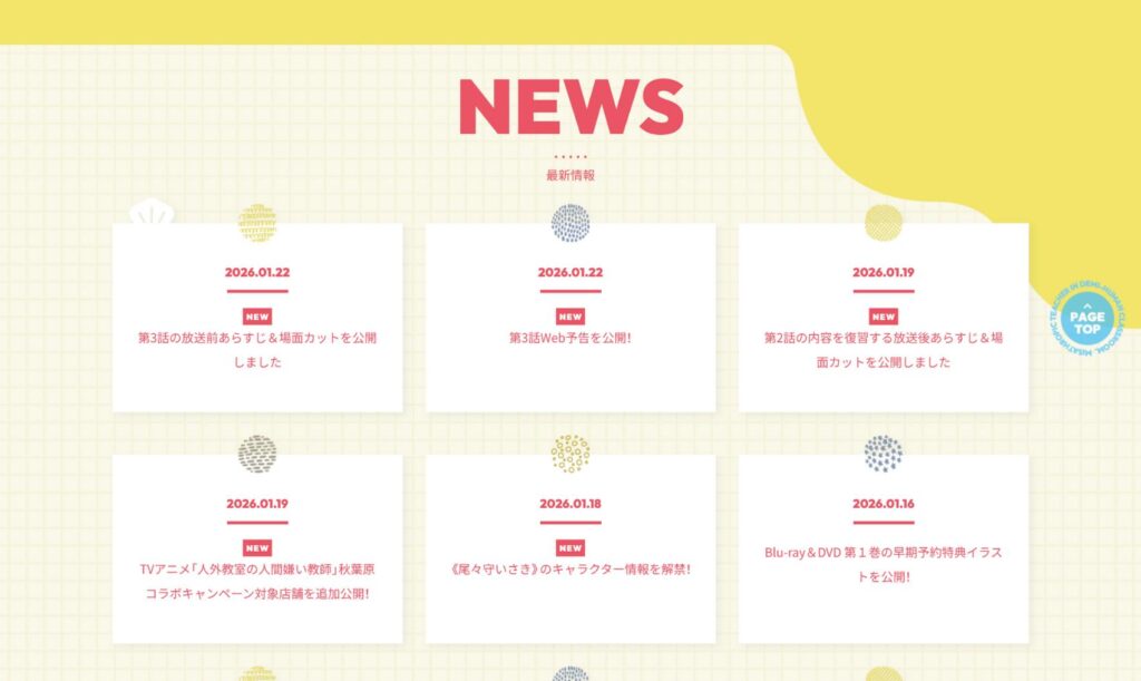 アニメ公式サイトなのに情報の圧が強すぎず、
